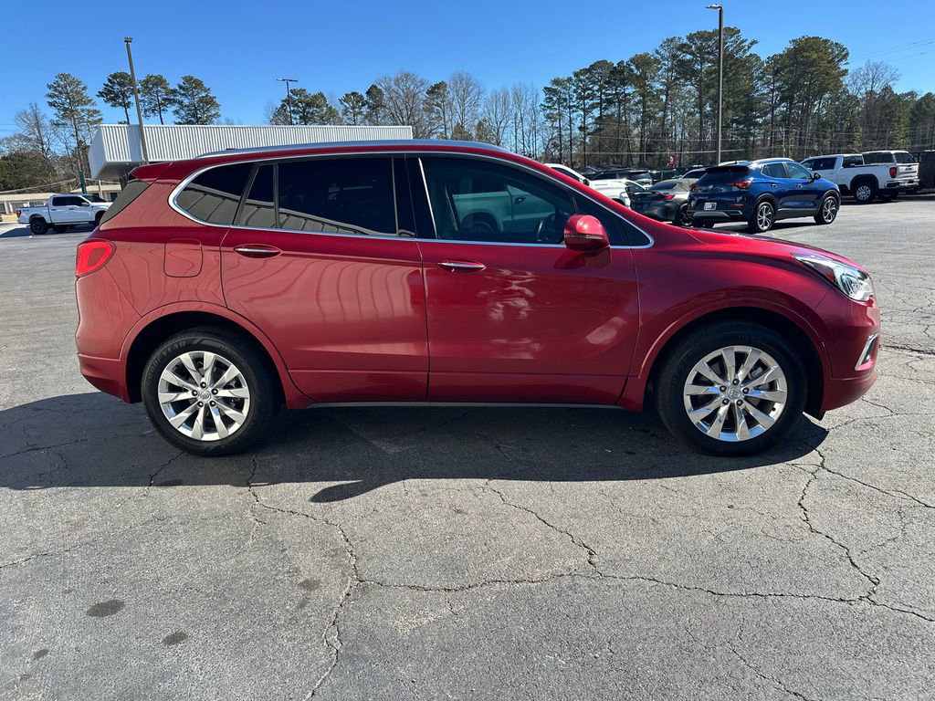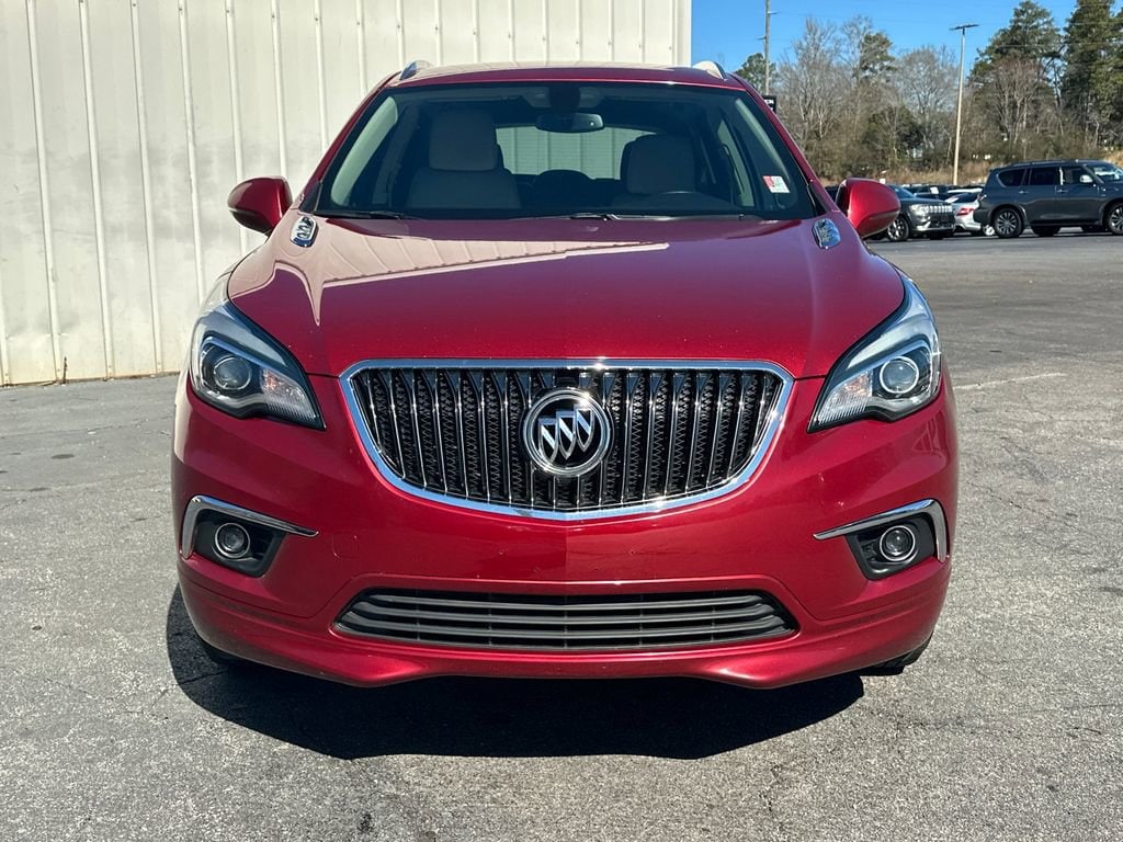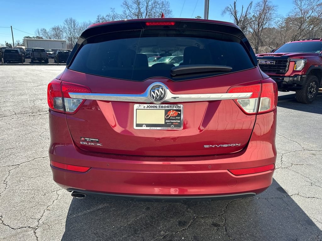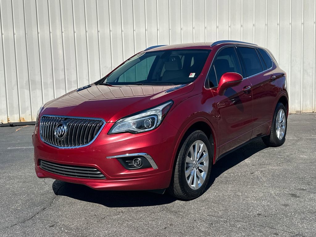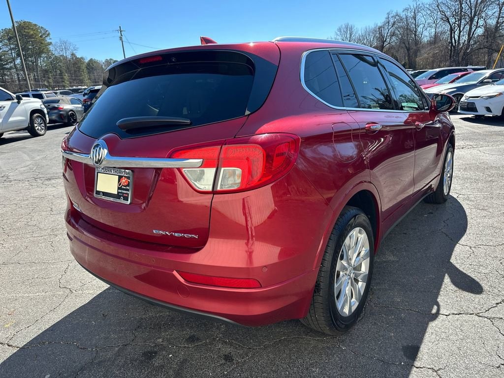 Thank you for considering this beautiful 2018 Buick Envision Essence finished in stunning Chili Red Metallic with Light Neutral Leather.Odometer is 9925 miles below market average!Priced below KBB Fair Purchase Price!22/29 City/Highway MPGWe are your premier Carrollton, GA Cadillac dealership. John Thornton Cadillac Inc. Is family owned, and it is our goal to provide you with an excellent purchase and ownership experience. We also proudly serve Douglasville Cadillac customers. Whether you're searching for a new or used car near Douglasville or Bremen, researching financing options, or looking for a quick quote on a car, truck, or SUV, the friendly, yet professional staff at our Carrollton Cadillac dealership is ready to provide you with all the help you need. We are proud to serve Bremen Cadillac customers. We have served as your premier Cadillac dealer for the entire West Georgia area for over 45 years. Preferred Equipment Group 1SL, 18 10-Spoke Polished Aluminum Wheels, 3.50 Final Drive Axle Ratio, 4-Wheel Disc Brakes, 6 Speakers, 6-Speaker Audio System Feature, ABS brakes, Air Conditioning, Alloy wheels, AM/FM radio: SiriusXM, Apple CarPlay/Android Auto, Auto-dimming door mirrors, Auto-dimming Rear-View mirror, Automatic temperature control, Brake assist, Bumpers: body-color, Compass, Delay-off headlights, Driver 8-Way Power Seat Adjuster, Driver door bin, Driver vanity mirror, Dual front impact airbags, Dual front side impact airbags, Electronic Stability Control, Emergency communication system: OnStar and Buick connected services capable, Exterior Parking Camera Rear, Four wheel independent suspension, Front anti-roll bar, Front Bucket Seats, Front Center Armrest, Front dual zone A/C, Front fog lights, Front Passenger 8-Way Power Seat Adjuster, Front reading lights, Fully automatic headlights, Garage door transmitter, Heated door mirrors, Heated Driver & Front Passenger Seats, Heated front seats, Heated rear seats, Heated steering wheel, Illuminated entry, Knee airbag, Low tire pressure warning, Memory seat, Occupant sensing airbag, Outside temperature display, Overhead airbag, Overhead console, Panic alarm, Passenger door bin, Passenger vanity mirror, Perforated Leather-Appointed Seat Trim, Power door mirrors, Power driver seat, Power Liftgate, Power passenger seat, Power steering, Power windows, Radio data system, Radio: Buick Infotainment System AM/FM Stereo, Rear air conditioning, Rear anti-roll bar, Rear reading lights, Rear seat center armrest, Rear side impact airbag, Rear window defroster, Rear window wiper, Remote keyless entry, Roof rack: rails only, Security system, SiriusXM Satellite Radio, Speed control, Speed-sensing steering, Split folding rear seat, Spoiler, Steering wheel mounted audio controls, Tachometer, Telescoping steering wheel, Tilt steering wheel, Traction control, Trip computer, Turn signal indicator mirrors, and Variably intermittent wipers.CLEAN CARFAX NO ACCIDENTS REPORTED, PLEASE CALL 770-832-9602 TODAY!!!.Awards:* JD Power Initial Quality Study, Dependability Study * JD Power Initial Quality Study * 2018 IIHS Top Safety Pick with optional front crash prevention and specific headlights * 2018 KBB.com Brand Image Awards