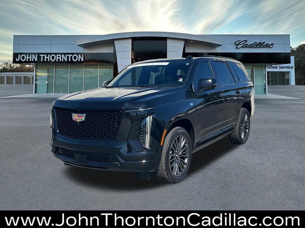 We are your premier Carrollton, GA Cadillac dealership. John Thornton Cadillac Inc. Is family owned, and it is our goal to provide you with an excellent purchase and ownership experience. We also proudly serve Douglasville Cadillac customers. Whether you're searching for a new or used car near Douglasville or Bremen, researching financing options, or looking for a quick quote on a car, truck, or SUV, the friendly, yet professional staff at our Carrollton Cadillac dealership is ready to provide you with all the help you need. We are proud to serve Bremen Cadillac customers. We have served as your premier Cadillac dealer for the entire West Georgia area for over 45 years. 3rd Row All-Weather Floor Liner Package, Floor Liner Package (Integrated Cargo Liner and Premium All-Weather Floor Liners), Preferred Equipment Group 1SH (2-Speed Active Transfer Case, AKG Studio Reference 36-Speaker Audio System, Blind Zone Steering Assist with Trailering, Door Lock and Latch Shields, Electronic Limited-Slip Differential, Floor Console with Covered Storage, Front Auxiliary 12-Volt Power Outlet, Glass Breakage Sensor, Heated and Ventilated Driver and Front Passenger Seats, Hitch Guidance with Hitch View, Illuminating Front and Rear Sill Plates, Integrated Trailer Brake Controller, Magnetic Ride Control Suspension, Next Generation Active Noise Cancellation, Night Vision, Platinum Interior Trim, Power Lumbar Massage Driver Seat, Power Lumbar Massage Front Passenger Seat, Power Panoramic Tilt-Sliding Sunroof, Power-Retractable Assist Steps, Rear Seat Entertainment System, Reconfigurable Full-Color Head-Up Display, Smart Trailer Integration Indicator, Theft-Deterrent Alarm System, Trailering App, Trailering Assist Guidelines, Vehicle Inclination Sensor, Vehicle Interior Movement Sensor, Wheel Locks, and Wheels: 22 18-Spoke Alloy), Touring Package (Air Ride Adaptive Suspension, Power Open/Close Doors, and Soft Closing Front and Rear Doors), Cadillac Certified Pre-Owned Certified, 4WD, Jet Black Leather, 2-Presets Memory For Driver Seat Adjuster, 3 Years SiriusXM, 3.23 Axle Ratio, 3rd row seats: split-bench, 4-Way Power Driver Lumbar Seat Adjuster, 4-Way Power Front Passenger Lumbar Seat Adjuster, 4-Wheel Disc Brakes, 8-Way Power Driver Seat Adjuster, 8-Way Power Front Passenger Seat Adjuster, ABS brakes, Adaptive suspension, Air Conditioning, Alloy wheels, AM/FM radio: SiriusXM with 360L, Apple CarPlay/Android Auto, Audio memory, Auto High-beam Headlights, Auto tilt-away steering wheel, Auto-dimming door mirrors, Auto-dimming Rear-View mirror, Automatic temperature control, Brake assist, Bumpers: body-color, Compass, Delay-off headlights, Driver door bin, Driver Seat Power Bolster, Driver vanity mirror, Dual front impact airbags, Dual front side impact airbags, Electronic Stability Control, Emergency communication system: OnStar Services capable, Exterior Parking Camera Rear, Four wheel independent suspension, Front anti-roll bar, Front Bucket Seats, Front Center Armrest w/Storage, Front dual zone A/C, Front Passenger Seat Power Bolster, Front reading lights, Full Semi-Aniline Leather Seats with Mini