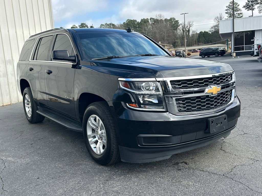 Recent Arrival! Thank you for considering this beautiful 2017 Chevrolet Tahoe LS finished in stunning Black with Black Cloth.Odometer is 4393 miles below market average!16/23 City/Highway MPGWe are your premier Carrollton, GA Cadillac dealership. John Thornton Cadillac Inc. Is family owned, and it is our goal to provide you with an excellent purchase and ownership experience. We also proudly serve Douglasville Cadillac customers. Whether you're searching for a new or used car near Douglasville or Bremen, researching financing options, or looking for a quick quote on a car, truck, or SUV, the friendly, yet professional staff at our Carrollton Cadillac dealership is ready to provide you with all the help you need. We are proud to serve Bremen Cadillac customers. We have served as your premier Cadillac dealer for the entire West Georgia area for over 45 years. Max Trailering Package (3.42 Rear Axle Ratio and Integrated Trailer Brake Controller), Preferred Equipment Group 1LS (1st & 2nd Row Color-Keyed Carpeted Floor Mats, 2nd Row 60/40 Split-Folding Manual Bench, 3rd Row Manual 60/40 Split-Folding Fold Flat Bench, 4-Wheel Antilock Disc Brakes w/Brake Assist, Black Assist Steps, Color-Keyed Carpeting Floor Covering, Driver Inboard & Front Passenger Airbags, Driver Information Center, Electronic Cruise Control w/Set & Resume Speed, Extended-Range Remote Keyless Entry, Floor Console, Leather-Wrapped Steering Wheel, OnStar Basic Plan For 5 Years, Rear Park Assist w/Audible Warning, Remote Vehicle Start, Roof-Mounted Luggage Rack Side Rails, and SiriusXM Satellite Radio), Premium Smooth Ride Suspension Package, Standard Suspension Package, Black Cloth, 18 x 8.5 Aluminum Wheels, 3.08 Rear Axle Ratio, 3rd row seats: split-bench, 4-Wheel Disc Brakes, 5 12-Volt Auxiliary Power Outlets, 6 Speakers, 6-Speaker Audio System Feature, 6-Way Power Front Passenger Seat Adjuster, ABS brakes, Air Conditioning, Alloy wheels, AM/FM radio: SiriusXM, Apple CarPlay/Android Auto, Automatic temperature control, Brake assist, Bumpers: body-color, Cargo Net, CD player, Compass, Delay-off headlights, Driver door bin, Driver vanity mirror, Dual front impact airbags, Dual front side impact airbags, Electronic Stability Control, Emergency communication system: OnStar Guidance, Exterior Parking Camera Rear, Front anti-roll bar, Front Bucket Seats, Front Center Armrest, Front dual zone A/C, Front High-Back Reclining Bucket Seats, Front reading lights, Front wheel independent suspension, Fully automatic headlights, Heated door mirrors, Illuminated entry, Low tire pressure warning, Occupant sensing airbag, Outside temperature display, Overhead airbag, Overhead console, Panic alarm, Passenger door bin, Passenger vanity mirror, Power door mirrors, Power driver seat, Power passenger seat, Power steering, Power windows, Premium audio system: Chevrolet MyLink, Premium Cloth Seat Trim, Radio: Chevrolet MyLink AM/FM Stereo, Rain sensing wipers, Rear air conditioning, Rear anti-roll bar, Rear reading lights, Rear seat center armrest, Rear window defroster, Rear window wiper, Remote keyless entry, Roof rack: rails only, Security system, Single-Slot CD/MP3 Player, Speed control, Speed-sensing steering, Split folding rear seat, Spoiler, Steering wheel mounted audio controls, Tachometer, Tilt steering wheel, Traction control, Trip computer, Variably intermittent wipers, and Voltmeter.CLEAN CARFAX NO ACCIDENTS REPORTED, ONE OWNER, PLEASE CALL 770-832-9602 TODAY!!!, Black Cloth.Awards:* JD Power Automotive Performance, Execution and Layout (APEAL) Study, Dependability Study * 2017 KBB.com 12 Best Family Cars * 2017 KBB.com 5-Year Cost to Own Awards * 2017 KBB.com Best Buy Awards * 2017 KBB.com 10 Most Awarded Brands