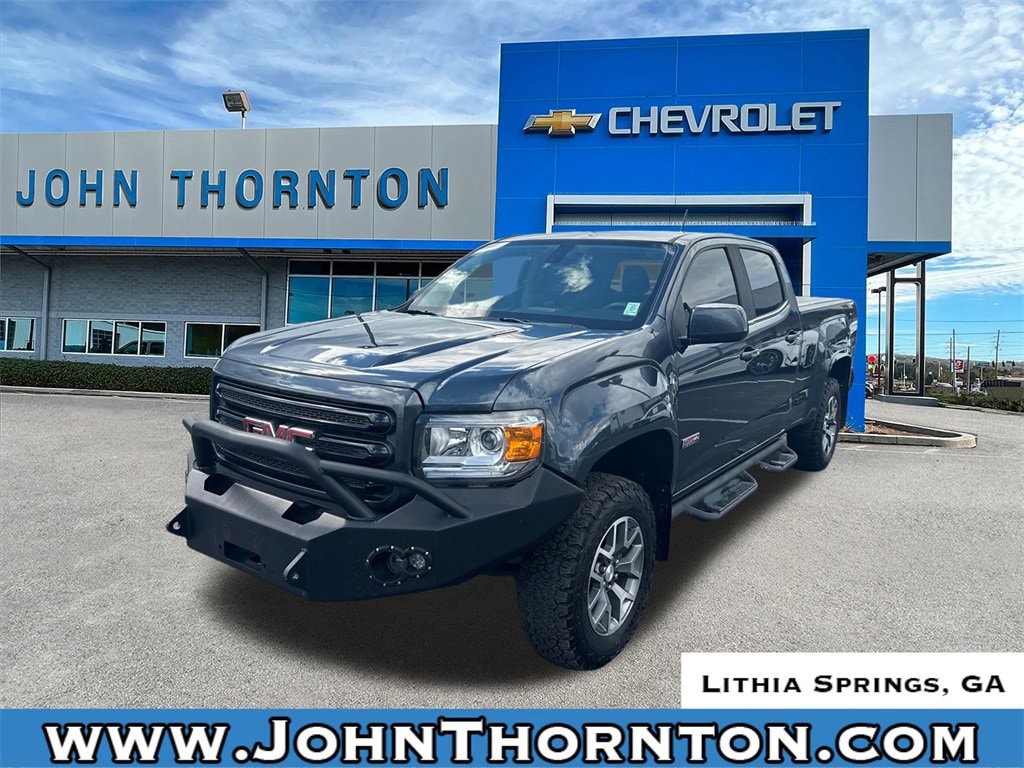SUPER RARE DIESEL CANYON!!! HIGHLY SOUGHT AFTER!!!Thank you for considering this beautiful 2019 GMC Canyon All Terrain finished in stunning Dark Sky Metallic with Jet Black/Cobalt Red w/Leather-Appointed Seat Trim.GO WEST to John Thornton Chevrolet, Celebrating 60 Years, Selling Chevy since 1957! Thank you for your interest in John Thornton Chevrolet! We happily serve Lithia Springs, Douglasville, Smyrna, Marietta, Kennesaw, Vining's, Atlanta, Dallas, Acworth, Villa Rica and proud to be your Chevrolet Dealer for all of West Georgia by providing quality automotive services and unrivaled customer service. All Terrain X Package (3 Round Black Off-Road Step Bars (LPO), All-Weather Floor Liner (LPO), and Black Spray-On Bedliner w/GMC Logo), Performance Skid Plate Package (LPO), Preferred Equipment Group 4SB (Tow/Haul Mode and Trailering Assist Guideline Hitch Guidance), Trailering Package, 4WD, 2 USB Data Ports, 3.42 Rear Axle Ratio, 4-Way Power Front Passenger Seat Adjuster, 4-Wheel Disc Brakes, 6 Speakers, 6-Speaker Audio System Feature, ABS brakes, Air Conditioning, Alloy wheels, AM/FM radio: SiriusXM, Apple CarPlay/Android Auto, Auto-dimming Rear-View mirror, Automatic temperature control, Bose Premium 7-Speaker Audio System Feature, Bumpers: body-color, Compass, Delay-off headlights, Driver 6-Way Power Seat Adjuster, Driver door bin, Driver vanity mirror, Dual front impact airbags, Dual front side impact airbags, Electronic Stability Control, Engine Block Heater, Exhaust Brake, Exterior Parking Camera Rear, Front anti-roll bar, Front Bucket Seats, Front Center Armrest, Front fog lights, Front License Plate Kit, Front reading lights, Front wheel independent suspension, Fully automatic headlights, HD Radio, Heated door mirrors, Heated Driver & Front Passenger Seats, Heated front seats, Illuminated entry, Integrated Trailer Brake Controller, Low tire pressure warning, Occupant sensing airbag, Outside temperature display, Overhead airbag, Overhead console, Panic alarm, Passenger door bin, Passenger vanity mirror, Power door mirrors, Power Driver Lumbar Control Seat Adjuster, Power driver seat, Power Passenger Lumbar Control Seat Adjuster, Power passenger seat, Power steering, Power windows, Premium audio system: GMC Infotainment System, Radio data system, Radio: AM/FM w/8 Diagonal Color Touch-Screen, Radio: AM/FM w/8 Diagonal Color Touch-Screen Nav, Rear reading lights, Rear seat center armrest, Rear step bumper, Rear window defroster, Remote keyless entry, Security system, SiriusXM Radio, Speed control, Speed-sensing steering, Steering wheel mounted audio controls, Tachometer, Telescoping steering wheel, Tilt steering wheel, Traction control, Trip computer, Variably intermittent wipers, and Wheels: 17 x 8 Dark Argent Metallic.4WD.