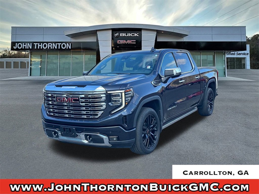 Recent Arrival! Thank you for considering this beautiful 2022 GMC Sierra 1500 Denali finished in stunning Titanium Rush Metallic with Atmosphere/Brownstone Leather.Odometer is 13635 miles below market average!14/19 City/Highway MPGWe are your premier Carrollton, GA Cadillac dealership. John Thornton Cadillac Inc. Is family owned, and it is our goal to provide you with an excellent purchase and ownership experience. We also proudly serve Douglasville Cadillac customers. Whether you're searching for a new or used car near Douglasville or Bremen, researching financing options, or looking for a quick quote on a car, truck, or SUV, the friendly, yet professional staff at our Carrollton Cadillac dealership is ready to provide you with all the help you need. We are proud to serve Bremen Cadillac customers. We have served as your premier Cadillac dealer for the entire West Georgia area for over 45 years. Preferred Equipment Group 5SA (120-Volt Bed Mounted Power Outlet, 120-Volt Instrument Panel Power Outlet, 170 Amp Alternator, 2 Charge/Data USB Ports Inside Center Console, 2 Type-C Charge-Only Rear USB Ports, 2 USB Ports, Auto-Locking Rear Differential, Auxiliary External Transmission Oil Cooler, Bed View Camera, Chrome Header w/Signature Denali Chrome Grille, Chrome Recovery Hooks, Chrome Wheel To Wheel Assist Steps, Color-Keyed Carpeting Floor Covering, Compass, Deep-Tinted Glass, Electric Rear-Window Defogger, Electrical Steering Column Lock, Floor-Mounted Center Console, Front Rainsensing Wipers, GMC Connected Access Capable, HD Surround Vision, Heated 2nd Row Outboard Seats, Heated Driver & Front Outboard Passenger Seating, Heated Steering Wheel, Heavy-Duty Air Filter, Hill Descent Control, Hitch Guidance w/Hitch View, In-Vehicle Trailering App, Integrated Trailer Brake Controller, Keyless Open & Start, LED Cargo Area Lighting, OnStar & GMC Connected Services Capable, Perimeter Lighting, Power Door Locks, Power Front Passenger Windows w/Express Up/Down, Power Front Windows w/Driver Express Up/Down, Power Rake & Telescoping Steering Column, Power Rear Windows w/Express Down, Power Sliding Rear Window w/Rear Defogger, Premium Bose 7-Speaker Sound System, Push Button Start, Rear Cross Traffic Braking, Rear Pedestrian Detection, Rear Wheelhouse Liners, Remote Vehicle Starter System, SiriusXM w/360L, Spray-On Pickup Bed Liner w/Denali Logo, Steering Wheel Audio Controls, Theft Deterrent System (Unauthorized Entry), Trailer Camera Provisions, Trailer Side Blind Zone Alert, Ultrasonic Front & Rear Park Assist, Universal Home Remote, Ventilated Driver & Front Passenger Seats, Wi-Fi Hotspot Capable, Wireless Charging, and Wireless Phone Projection), Trailering Package (Hitch Guidance), 10-Speed Automatic, 4WD, Atmosphere/Brownstone Leather, 10-Way Power Driver Seat Adjuster w/Lumbar, 10-Way Power Passenger Seat Adjuster w/Lumbar, 3 Years of OnStar Safety & Security, 3.23 Rear Axle Ratio, 4-Wheel Disc Brakes, 7 Speakers, ABS brakes, Adaptive suspension, Air Conditioning, Alloy wheels, AM/FM radio: SiriusXM with 360L, Apple CarPlay/Android Auto, Auto High-beam Headlights, Auto-dimming door mirrors, Auto-dimming Rear-View mirror, Automatic Emergency Braking, Automatic temperature control, Brake assist, Buckle to Drive, Bumpers: body-color, Cargo Tie-Downs (4) (LPO), Delay-off headlights, Denali Premium Suspension w/Adaptive Ride Control, Driver door bin, Driver Memory, Driver vanity mirror, Dual front impact airbags, Dual front side impact airbags, Electronic Stability Control, Emergency communication system: OnStar and GMC Connected Services capable, Following Distance Indicator, Forge Perforated Leather Seat Trim, Forward Collision Alert, Front anti-roll bar, Front Bucket Seats, Front Center Armrest, Front dual zone A/C, Front fog lights, Front License Plate Kit, Front Pedestrian Braking, Front reading lights, Front wheel independent suspension, Fully automatic headlights, Garage door transmitter, Genui