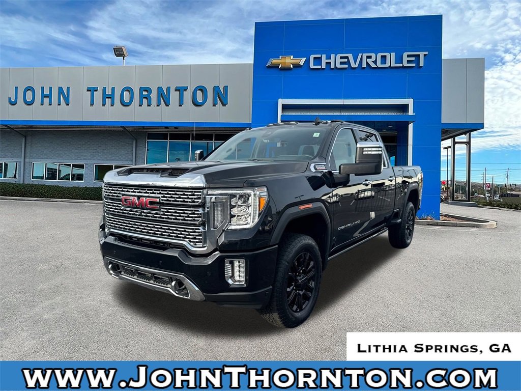 Priced below KBB Fair Purchase Price! Odometer is 4213 miles below market average!Thank you for considering this beautiful 2022 GMC Sierra 2500HD Denali finished in stunning Ebony Twilight Metallic with Dark Walnut/Dark Ash Grey Leather. GO WEST to John Thornton Chevrolet, Celebrating 60 Years, Selling Chevy since 1957! Thank you for your interest in John Thornton Chevrolet! We happily serve Lithia Springs, Douglasville, Smyrna, Marietta, Kennesaw, Viningâs, Atlanta, Dallas, Acworth, Villa Rica and proud to be your Chevrolet Dealer for all of West Georgia by providing quality automotive services and unrivaled customer service. Denali Black Diamond Edition (Front Prem Floor Liners w/Removable Carpet Insert, MultiPro Audio System by Kicker (LPO), Power-Retractable Assist Steps, Rear Prem Floor Liners w/Removable Carpet Insert, Trailer Tire Pressure Monitor Sensors, Wheels: 20 High Gloss Black Painted Aluminum, and Wired Auxiliary Trailer Camera (LPO)), Denali Ultimate Package (Power Sunroof), Driver Alert Package I (Lane Change Alert w/Side Blind Zone Alert and Rear Cross Traffic Alert), Driver Alert Package II (Automatic Emergency Braking, Following Distance Indicator, Forward Collision Alert, IntelliBeam Automatic High Beam On/Off, and Lane Departure Warning System), Gooseneck/5th Wheel Prep Package, Preferred Equipment Group 5SA (12-Volt Rear Auxiliary Power Outlet, 120-Volt Bed Mounted Power Outlet, 120-Volt Instrument Panel Power Outlet, 2 USB Ports, 2 USB Ports (1st Row), 2-Speed Active Transfer Case, 2nd Row Dual USB Charge-Only Ports, 6 Rectangular Chromed Tubular Assist Steps, Bed View Camera w/2 Trailer Camera Provisions, Compass Located In Instrument Cluster, Deep-Tinted Glass, Electric Rear-Window Defogger, Electrical Lock Control Steering Column, Floor-Mounted Center Console, Front Chrome Recovery Hooks, GMC Connected Access Capable, HD Surround Vision w/2 Trailer View Camera Provisions, Heated & Ventilated Front Bucket Seats, Heated Driver & Front Outboard Passenger Seats, Integrated Trailer Brake Controller, Keyless Open & Start, LED Cargo Area Lighting, LED Smoked Amber Roof Marker Lamps, Manual Tilt-Wheel/Telescoping Steering Column, OnStar & GMC Connected Services Capable, Polished Exhaust Tip, Power Door Locks, Power Front Passenger Windows w/Express Up/Down, Power Rear Windows w/Express Down, Power Sliding Rear Window w/Defogger, Power Windows w/Driver Express Up/Down, Rear Wheelhouse Liners, Remote Vehicle Starter System, Safety Alert Seat, Signature Denali Grille, Spray-On Pickup Box Bed Liner w/Denali Logo, Steering Wheel Audio Controls, Unauthorized Entry Theft-Deterrent System, Universal Home Remote, Wi-Fi Hotspot Capable, Wireless Charging, and Wireless Phone Projection), Technology Package (Inside Rearview Auto-Dimming Rear Camera Mirror and Multicolor 15 Diagonal Head-Up Display), X31 Off-Road Package (Hill Descent Control), 10-Speed Automatic, 4WD, Dark Walnut/Dark Ash Grey Leather, 10-Way Power Driver Seat Adjuster w/Lumbar, 10-Way Power Passenger Seat Adjuster w/Lumbar, 220 Amps Alternator, 3 Years of OnStar & Connected Services Plan, 3.42 Axle Ratio, 3.73 Rear Axle Ratio, 4-Wheel Disc Brakes, 7 Speakers, ABS brakes, Air Conditioning, Alloy wheels, AM/FM radio: SiriusXM with 360L, Apple CarPlay/Android Auto, Auto High-beam Headlights, Auto-dimming door mirrors, Auto-dimming Rear-View mirror, Automatic temperature control, Bose Premium 7 Speaker Sound System, Brake assist, Bumpers: body-color, Compass, Delay-off headlights, Driver door bin, Driver Memory, Driver vanity mirror, Dual front impact airbags, Dual front side impact airbags, Electronic Stability Control, Emergency communication system: OnStar and GMC Connected Services capable, Engine Block Heater, Exhaust Brake, Exterior Parking Camera Rear, Forge Perforated Leather-Appointed Front Seat Trim, Front anti-roll bar, Front Bucket Seats, Front Center Armrest, Front dual zone A/C, Front fog lights, Front reading li
