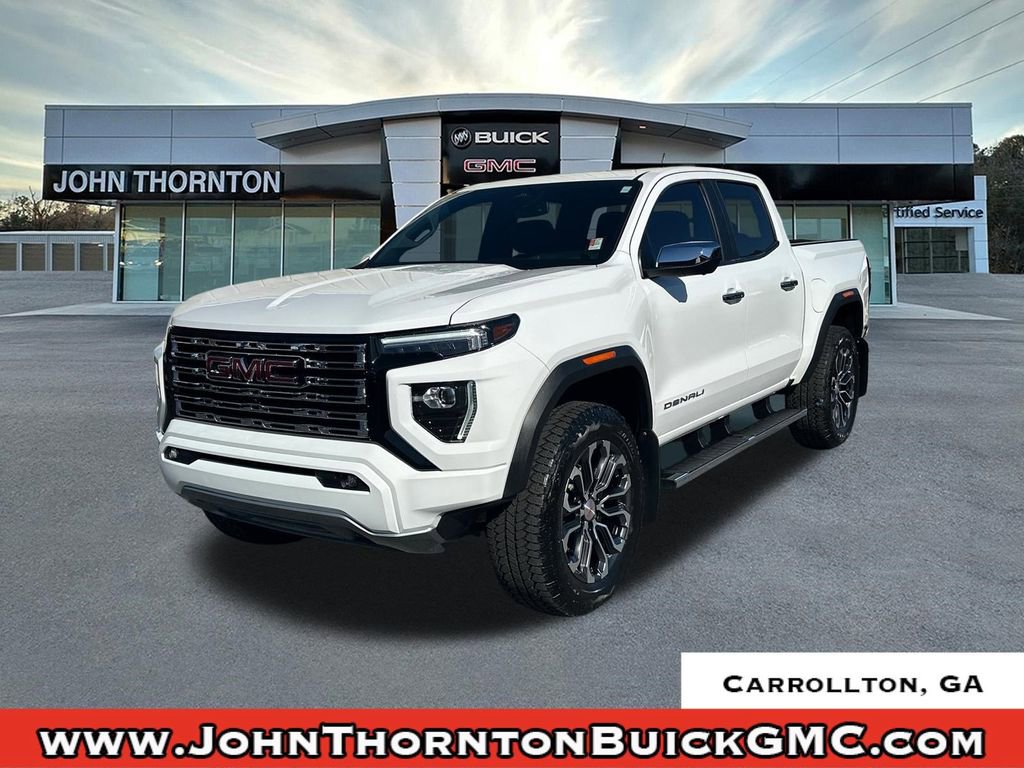 Thank you for considering this beautiful 2024 GMC Canyon Denali finished in stunning Summit White with Jet Black/Teak Leather.Odometer is 5939 miles below market average!18/22 City/Highway MPGWe are your premier Carrollton, GA Cadillac dealership. John Thornton Cadillac Inc. Is family owned, and it is our goal to provide you with an excellent purchase and ownership experience. We also proudly serve Douglasville Cadillac customers. Whether you're searching for a new or used car near Douglasville or Bremen, researching financing options, or looking for a quick quote on a car, truck, or SUV, the friendly, yet professional staff at our Carrollton Cadillac dealership is ready to provide you with all the help you need. We are proud to serve Bremen Cadillac customers. We have served as your premier Cadillac dealer for the entire West Georgia area for over 45 years. Preferred Equipment Group 5SB (120-Volt Bed Mounted Power Outlet, 2 Rear USB Ports in Center Console (Charge-Only), 5 Rectangular Chrome Assist Steps, 6-Way Power Passenger Seat Adjuster, 8-Way Power Driver Seat Adjuster, Adaptive Cruise Control, Automatic Emergency Braking, Automatic Locking Rear Differential, Blind Zone Steering Assist, Canyon Pro Safety, Driver & Front Passenger Illuminated Visors, Driver & Front Passenger Ventilated Seats, Driver Memory, Driver Seatback Map Pocket, Dual-Zone Automatic Air Conditioning, EZ-Lift & Lower Tailgate, Following Distance Indicator, Forward Collision Alert, Front LED Fog Lamps, Front Pedestrian & Bicyclist Braking, HD Surround Vision, Heated Driver & Front Passenger Seats, Heated Power-Adjustable Outside Mirrors, Heated Steering Wheel, Inside Rear-View Auto-Dimming Mirror, IntelliBeam Automatic High Beam On/Off, Interior Overhead Courtesy Light w/Dual Reading Lamp, Lane Keep Assist w/Lane Departure Warning, Manual Rear-Sliding Window, Multicolor 6.3 Diagonal Head-Up Display, MultiStow Tailgate, Power Driver Lumbar Control Seat Adjuster, Power Passenger Lumbar Control Seat Adjuster, Premium 7-Speaker Bose Sound System, Rear Center Fold-Down Armrest w/2 Cupholders, Rear Cross Traffic Braking, Rear of Console 120-Volt Power Outlet, Rear Pedestrian Alert, Rear-Window Electric Defogger, Remote Vehicle Starter System, Safety Alert Seat, Spray-On Bedliner, Tailgate Keyed Cylinder Lock, Tilt & Telescopic Manual Steering Column, Ultrasonic Rear Park Assist, and Wireless Charging), ProGrade Trailering System (Blind Zone Steering Assist w/Trailering and Trailering App System), Trailering Package (Integrated Trailer Brake Controller), 4WD, 2 1st Row USB Charge/Data Ports, 220 Amps Alternator, 3.42 Rear Axle Ratio, 4-Wheel Disc Brakes, 7 Speakers, ABS brakes, Air Conditioning, Alloy wheels, AM/FM radio, Apple CarPlay/Android Auto, Auto High-beam Headlights, Auto-dimming Rear-View mirror, Automatic Stop/Start, Automatic temperature control, Brake assist, Bumpers: body-color, Compass, Delay-off headlights, Driver door bin, Driver Mode Selector, Driver vanity mirror, Dual front impact airbags, Dual front side impact airbags, Electronic Stability Control, Emergency communication system: OnStar, Front anti-roll bar, Front Bucket Seats, Front Center Armrest, Front dual zone A/C, Front fog lights, Front Passenger Seatback Map Pocket, Front reading lights, Front wheel independent suspension, Genuine wood dashboard insert, Genuine wood door panel insert, Heads-Up Display, Heated door mirrors, Heated front seats, Heated steering wheel, Illuminated entry, Low tire pressure warning, Memory seat, Navigation system: OnStar, Occupant sensing airbag, Outside temperature display, Overhead airbag, Overhead console, Panic alarm, Passenger door bin, Passenger vanity mirror, Perforated Leather-Appointed Seat Trim, Power door mirrors, Power driver seat, Power Inner Sliding Glass Sunroof w/Manual Shade, Power passenger seat, Power steering, Power windows, Radio data system, Radio: 11.3 Diagonal Premium GMC Infotainment Sys,