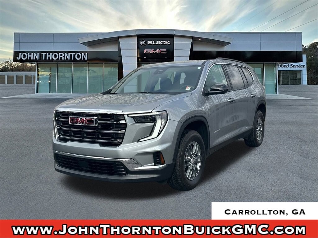 Recent Arrival! Thank you for considering this beautiful 2025 GMC Acadia Elevation finished in stunning Sterling Metallic with After Dark Cloth.Odometer is 5770 miles below market average!Priced below KBB Fair Purchase Price!20/27 City/Highway MPGWe are your premier Carrollton, GA Cadillac dealership. John Thornton Cadillac Inc. Is family owned, and it is our goal to provide you with an excellent purchase and ownership experience. We also proudly serve Douglasville Cadillac customers. Whether you're searching for a new or used car near Douglasville or Bremen, researching financing options, or looking for a quick quote on a car, truck, or SUV, the friendly, yet professional staff at our Carrollton Cadillac dealership is ready to provide you with all the help you need. We are proud to serve Bremen Cadillac customers. We have served as your premier Cadillac dealer for the entire West Georgia area for over 45 years. Preferred Equipment Group 4SC, FWD, After Dark Cloth, 12 Speakers, 18 x 7.5 Aluminum Wheels, 2-Way Driver Power Lumbar Seat Adjuster, 3.49 Final Drive Axle Ratio, 3rd row seats: split-bench, 4-Way Manual Front Passenger Seat Adjuster, 4-Wheel Disc Brakes, 7-Passenger Seating (2-2-3 Seating Configuration), 8-Passenger Seating (2-3-3 Seating Configuration), 8-Way Power Driver Seat Adjuster, ABS brakes, Air Conditioning, Alloy wheels, AM/FM radio: SiriusXM with 360L, Apple CarPlay/Android Auto, Auto High-beam Headlights, Auto-dimming Rear-View mirror, Automatic temperature control, Bodyside moldings, Bose Premium 12-Speaker System w/Sub-Woofer, Brake assist, Bumpers: body-color, Cloth Seat Trim, Compass, Delay-off headlights, Driver door bin, Driver vanity mirror, Dual front impact airbags, Dual front side impact airbags, Electronic Stability Control, Emergency communication system: OnStar Services capable, Exterior Parking Camera Rear, Four wheel independent suspension, Front anti-roll bar, Front Bucket Seats, Front Center Armrest, Front dual zone A/C, Front fog lights, Front reading lights, Fully automatic headlights, Heated door mirrors, Heated Driver & Front Passenger Seats, Heated front seats, Heated steering wheel, Illuminated entry, Leather steering wheel, Low tire pressure warning, Navigation System, Occupant sensing airbag, Outside temperature display, Overhead airbag, Overhead console, Panic alarm, Passenger door bin, Passenger vanity mirror, Power door mirrors, Power driver seat, Power Liftgate, Power steering, Power windows, Radio data system, Radio: 15 Premium GMC Infotainment System, Rear air conditioning, Rear anti-roll bar, Rear reading lights, Rear seat center armrest, Rear side impact airbag, Rear window defroster, Rear window wiper, Remote keyless entry, Security system, SiriusXM w/360L, Speed control, Speed-sensing steering, Split folding rear seat, Spoiler, Sport steering wheel, Steering wheel mounted audio controls, Tachometer, Telescoping steering wheel, Tilt steering wheel, Traction control, Trip computer, Turn signal indicator mirrors, Variably intermittent wipers, and Voltmeter.FWD, After Dark Cloth.