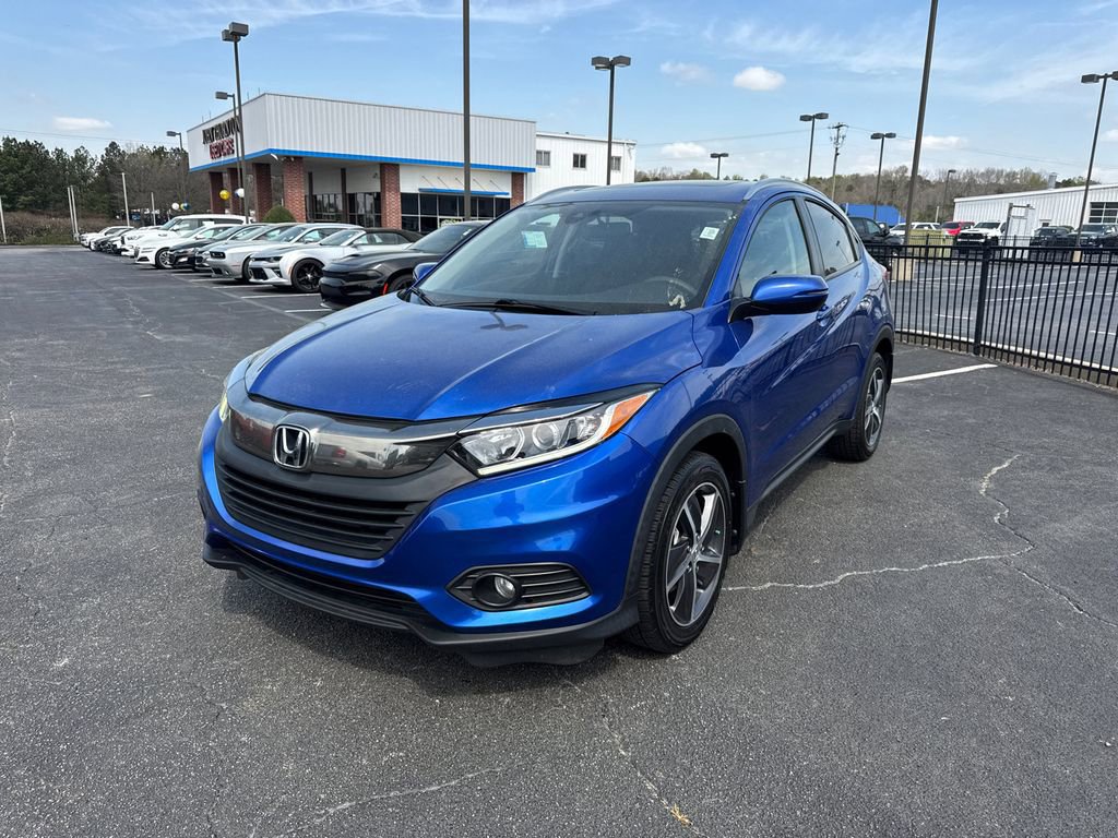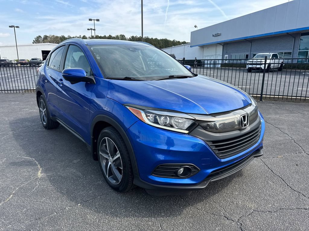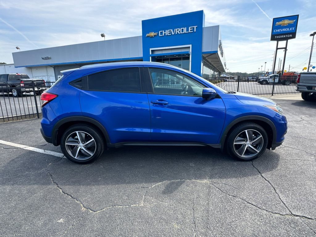 Thank you for considering this beautiful 2022 Honda HR-V EX finished in stunning Aegean Blue Metallic with Cloth. GO WEST to John Thornton Chevrolet, Celebrating 60 Years, Selling Chevy since 1957! Thank you for your interest in John Thornton Chevrolet! We happily serve Lithia Springs, Douglasville, Smyrna, Marietta, Kennesaw, Viningâs, Atlanta, Dallas, Acworth, Villa Rica and proud to be your Chevrolet Dealer for all of West Georgia by providing quality automotive services and unrivaled customer service. 17 Machine-Finished Alloy Wheels, 4-Wheel Disc Brakes, 5.436 Axle Ratio, 6 Speakers, ABS brakes, Air Conditioning, Alloy wheels, AM/FM radio: SiriusXM, Apple CarPlay/Android Auto, Auto High-beam Headlights, Automatic temperature control, Brake assist, Bumpers: body-color, Cloth Seat Trim, Delay-off headlights, Driver door bin, Driver vanity mirror, Dual front impact airbags, Dual front side impact airbags, Electronic Stability Control, Emergency communication system: HondaLink, Exterior Parking Camera Rear, Forward collision: Collision Mitigation Braking System (CMBS) + FCW mitigation, Front anti-roll bar, Front Bucket Seats, Front Center Armrest, Front fog lights, Front reading lights, Front wheel independent suspension, Fully automatic headlights, Heated door mirrors, Heated Front Bucket Seats, Heated front seats, Illuminated entry, Low tire pressure warning, Occupant sensing airbag, Outside temperature display, Overhead airbag, Panic alarm, Passenger door bin, Passenger vanity mirror, Power door mirrors, Power moonroof, Power steering, Power windows, Radio data system, Radio: AM/FM/HD Audio System (180-Watt), Rear window defroster, Rear window wiper, Remote keyless entry, Roof rack: rails only, Security system, SiriusXM, Speed control, Speed-sensing steering, Split folding rear seat, Spoiler, Steering wheel mounted audio controls, Tachometer, Telescoping steering wheel, Tilt steering wheel, Traction control, Trip computer, Turn signal indicator mirrors, and Variably intermittent wipers.