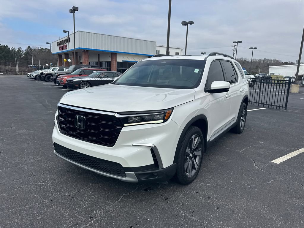 Odometer is 3454 miles below market average!Thank you for considering this beautiful 2023 Honda Pilot Touring finished in stunning Platinum with Leather. GO WEST to John Thornton Chevrolet, Celebrating 60 Years, Selling Chevy since 1957! Thank you for your interest in John Thornton Chevrolet! We happily serve Lithia Springs, Douglasville, Smyrna, Marietta, Kennesaw, Viningâs, Atlanta, Dallas, Acworth, Villa Rica and proud to be your Chevrolet Dealer for all of West Georgia by providing quality automotive services and unrivaled customer service. AWD, 12 Speakers, 3rd row seats: split-bench, 4-Wheel Disc Brakes, ABS brakes, Adaptive Cruise Control: Adaptive Cruise Control (ACC) with Low-Speed Follow, Air Conditioning, Alloy wheels, AM/FM radio: SiriusXM, Apple CarPlay/Android Auto, Auto High-beam Headlights, Auto-dimming Rear-View mirror, Automatic temperature control, Axle Ratio: 4.167, Blind Spot Information (BSI) System warning, Bose Premium Sound System, Brake assist, Bumpers: body-color, Compass, Delay-off headlights, Driver door bin, Driver vanity mirror, Dual front impact airbags, Dual front side impact airbags, Electronic Stability Control, Emergency communication system: HondaLink, Four wheel independent suspension, Front anti-roll bar, Front Bucket Seats, Front Center Armrest, Front dual zone A/C, Front fog lights, Front reading lights, Fully automatic headlights, Garage door transmitter: HomeLink, Heated door mirrors, Heated Front Bucket Seats, Heated front seats, Illuminated entry, Knee airbag, Lane departure: Lane Keeping Assist System (LKAS) active, Leather Seat Trim, Low tire pressure warning, Memory seat, Navigation system: Honda Satellite-Linked Navigation System, Occupant sensing airbag, Outside temperature display, Overhead airbag, Overhead console, Panic alarm, Passenger door bin, Passenger vanity mirror, Power door mirrors, Power driver seat, Power Liftgate, Power moonroof, Power passenger seat, Power steering, Power windows, Radio data system, Rear air conditioning, Rear anti-roll bar, Rear reading lights, Rear seat center armrest, Rear window defroster, Rear window wiper, Reclining 3rd row seat, Remote keyless entry, Security system, Speed control, Speed-sensing steering, Speed-Sensitive Wipers, Split folding rear seat, Spoiler, Steering wheel mounted audio controls, Tachometer, Telescoping steering wheel, Tilt steering wheel, Traction control, Trip computer, Turn signal indicator mirrors, Variably intermittent wipers, and Wheels: 20 Machine Face Shark Gray w/Blk Lug Nuts.AWD.