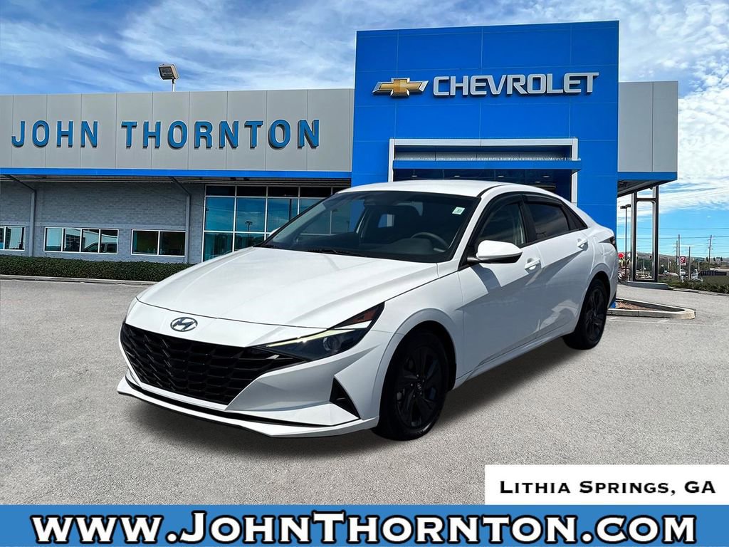Thank you for considering this beautiful 2023 Hyundai Elantra SEL finished in stunning Serenity White Pearl with Black Cloth. GO WEST to John Thornton Chevrolet, Celebrating 60 Years, Selling Chevy since 1957! Thank you for your interest in John Thornton Chevrolet! We happily serve Lithia Springs, Douglasville, Smyrna, Marietta, Kennesaw, Viningâs, Atlanta, Dallas, Acworth, Villa Rica and proud to be your Chevrolet Dealer for all of West Georgia by providing quality automotive services and unrivaled customer service. Option Group 01, Preferred Accessory Package (Cargo Side Bins, First Aid Kit, and Trunk/Cargo Hook), 16 x 6.5J Alloy Wheels, 4-Wheel Disc Brakes, 6 Speakers, ABS brakes, Air Conditioning, Alloy wheels, AM/FM radio: SiriusXM, Apple CarPlay & Android Auto, Auto High-beam Headlights, Automatic temperature control, Brake assist, Bumpers: body-color, Cargo Net, Carpeted Floor Mats, Cloth Seat Trim, Delay-off headlights, Driver door bin, Driver vanity mirror, Dual front impact airbags, Dual front side impact airbags, Electronic Stability Control, Emergency communication system: Blue Link Connected Car Service (3-year complimentary subscription), Exterior Parking Camera Rear, Front anti-roll bar, Front Bucket Seats, Front Center Armrest, Front dual zone A/C, Front reading lights, Front wheel independent suspension, Fully automatic headlights, Illuminated entry, Low tire pressure warning, Occupant sensing airbag, Outside temperature display, Overhead airbag, Overhead console, Panic alarm, Passenger door bin, Passenger vanity mirror, Power door mirrors, Power steering, Power windows, Radio: AM/FM/HD/SiriusXM Display Audio, Rear window defroster, Remote keyless entry, Security system, Speed control, Speed-sensing steering, Steering wheel mounted audio controls, Tachometer, Telescoping steering wheel, Tilt steering wheel, Traction control, Trip computer, and Variably intermittent wipers.