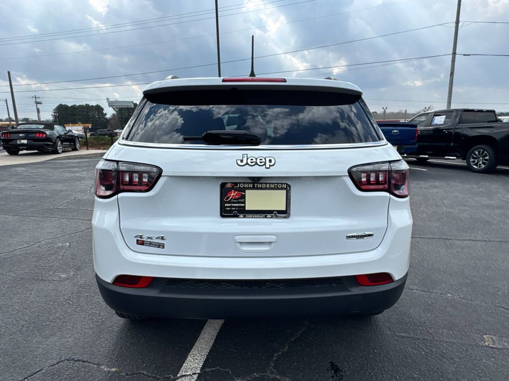 Priced below KBB Fair Purchase Price!Thank you for considering this beautiful 2022 Jeep Compass Latitude Lux finished in stunning Bright White Clearcoat with Black Leather. GO WEST to John Thornton Chevrolet, Celebrating 60 Years, Selling Chevy since 1957! Thank you for your interest in John Thornton Chevrolet! We happily serve Lithia Springs, Douglasville, Smyrna, Marietta, Kennesaw, Viningâs, Atlanta, Dallas, Acworth, Villa Rica and proud to be your Chevrolet Dealer for all of West Georgia by providing quality automotive services and unrivaled customer service. Quick Order Package 2GL, Sun and Sound Group (Power Front/Fixed Rear Full Sunroof and Premium Alpine Speaker System), 4WD, 3.73 Axle Ratio, 4-Wheel Disc Brakes, 6 Speakers, ABS brakes, Air Conditioning, Alloy wheels, AM/FM radio: SiriusXM, Anti-whiplash front head restraints, Auto High-beam Headlights, Auto-dimming Rear-View mirror, Brake assist, Bumpers: body-color, Compass, Delay-off headlights, Driver door bin, Driver vanity mirror, Dual front impact airbags, Dual front side impact airbags, Electronic Stability Control, Emergency communication system: SiriusXM Guardian, Four wheel independent suspension, Front anti-roll bar, Front Bucket Seats, Front Center Armrest w/Storage, Front fog lights, Front reading lights, Fully automatic headlights, Heated door mirrors, Heated front seats, Heated steering wheel, Illuminated entry, Knee airbag, Leather Shift Knob, Leather Trimmed Bucket Seats, Low tire pressure warning, Occupant sensing airbag, Outside temperature display, Overhead airbag, Overhead console, Panic alarm, ParkView Rear Back-Up Camera, Passenger door bin, Passenger vanity mirror, Power door mirrors, Power driver seat, Power steering, Power windows, Radio: Uconnect 5 w/10.1 Display, Rear anti-roll bar, Rear seat center armrest, Rear window defroster, Rear window wiper, Remote keyless entry, Roof rack: rails only, Security system, Speed control, Speed Control (DISC), Split folding rear seat, Spoiler, Steering wheel mounted audio controls, Tachometer, Telescoping steering wheel, Tilt steering wheel, Traction control, Trip computer, Variably intermittent wipers, and Wheels: 18 x 7.0 Painted Aluminum.4WD.