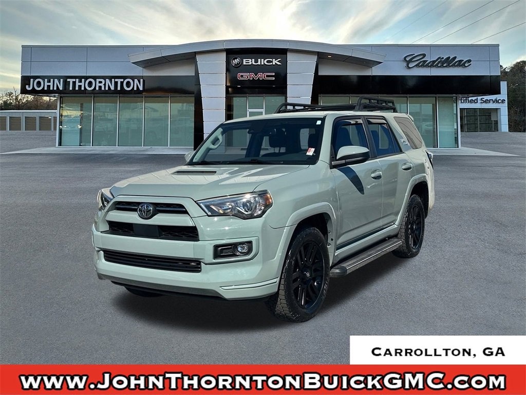 We are your premier Carrollton, GA Cadillac dealership. John Thornton Cadillac Inc. Is family owned, and it is our goal to provide you with an excellent purchase and ownership experience. We also proudly serve Douglasville Cadillac customers. Whether you're searching for a new or used car near Douglasville or Bremen, researching financing options, or looking for a quick quote on a car, truck, or SUV, the friendly, yet professional staff at our Carrollton Cadillac dealership is ready to provide you with all the help you need. We are proud to serve Bremen Cadillac customers. We have served as your premier Cadillac dealer for the entire West Georgia area for over 45 years. 4WD, Black/Graphite w/SofTex Seat Trim, 3.727 Axle Ratio, 4-Wheel Disc Brakes, 8 Speakers, ABS brakes, Air Conditioning, Alloy wheels, AM/FM radio: SiriusXM, Anti-whiplash front head restraints, Apple CarPlay/Android Auto, Auto High-beam Headlights, Black Roof Rails, Brake assist, Bumpers: body-color, Driver door bin, Driver vanity mirror, Dual front impact airbags, Dual front side impact airbags, Electronic Stability Control, Emergency communication system: Safety Connect with 1-year trial, Exterior Parking Camera Rear, Front anti-roll bar, Front Bucket Seats, Front Center Armrest, Front fog lights, Front reading lights, Front wheel independent suspension, Heated door mirrors, Illuminated entry, Knee airbag, Leather Shift Knob, Leather steering wheel, Low tire pressure warning, Occupant sensing airbag, Outside temperature display, Overhead airbag, Overhead console, Panic alarm, Passenger door bin, Passenger vanity mirror, Power door mirrors, Power driver seat, Power steering, Power windows, Radio: Audio, Rear anti-roll bar, Rear seat center armrest, Rear window defroster, Rear window wiper, Remote keyless entry, Roof rack: rails only, Security system, Shift Knob, SofTex Seat Trim, Speed control, Speed-sensing steering, Split folding rear seat, Spoiler, Steering wheel mounted audio controls, Tachometer, Telescoping steering wheel, Tilt steering wheel, Traction control, TRD Sport Badge, TRD Sport Carpet Floor Mats, Trip computer, Variably intermittent wipers, and Wheels: 20 Dark Gray Metallic Machined-Face Alloy.